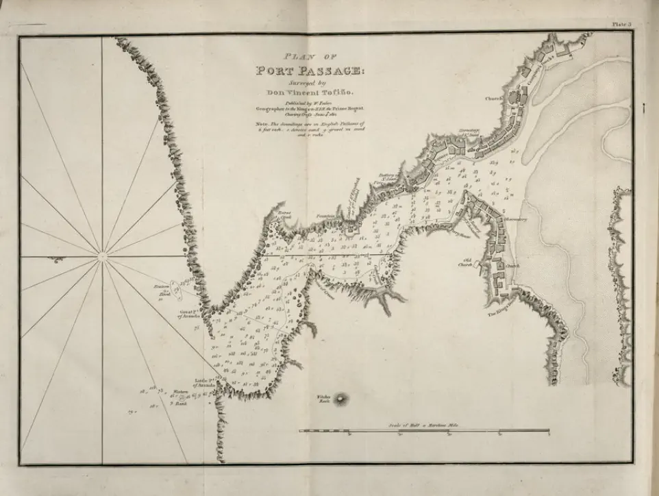 L’intérieur de la rade du Passage est saine, il n’y a pas de rocher, si ce n’est à l’extrémité, en se dirigeant vers St. Sébastien; mais