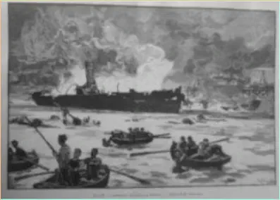 tour et, des 5 gabares accostées au navire, l'une était coulée par