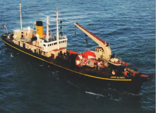 Construit aux chantiers Augustin Normand au Havre en 1933 sous le nom de Finistère le baliseur André Blondel est arrivé au Verdon en 1974 en