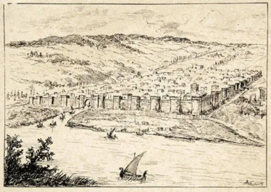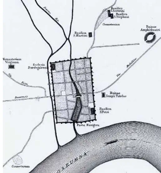 Reconstitution de Bordeaux au 4e siècle. Gravure sur