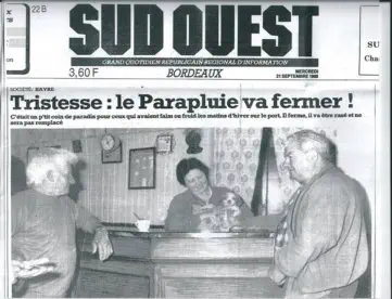 Avant de refermer ce chapitre sur le Parapluie je tiens à ajouter l’article paru dans SUD OUEST du 21 septembre 1988 du journaliste