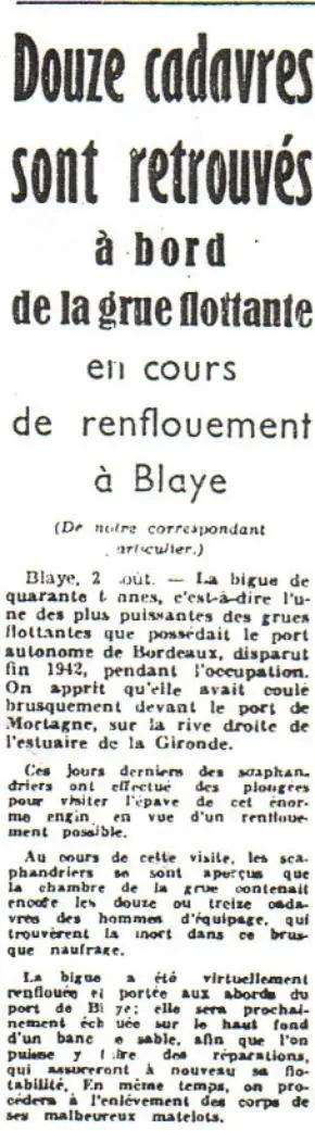 Le naufrage du ponton-grue de 30 t en 1942 et son renflouement en 1947