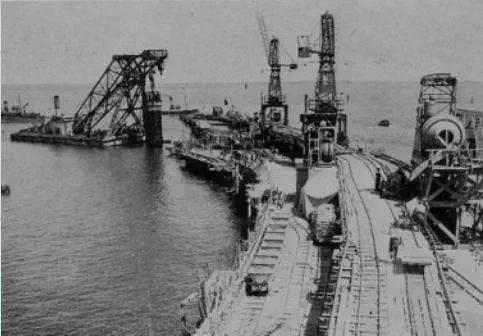 montage de nouvelles grues, etc. En 1952, avec sa nouvelle mature, la bigue FRANCOIS LEVEQUE va permettre de sortir quelques tronçons des