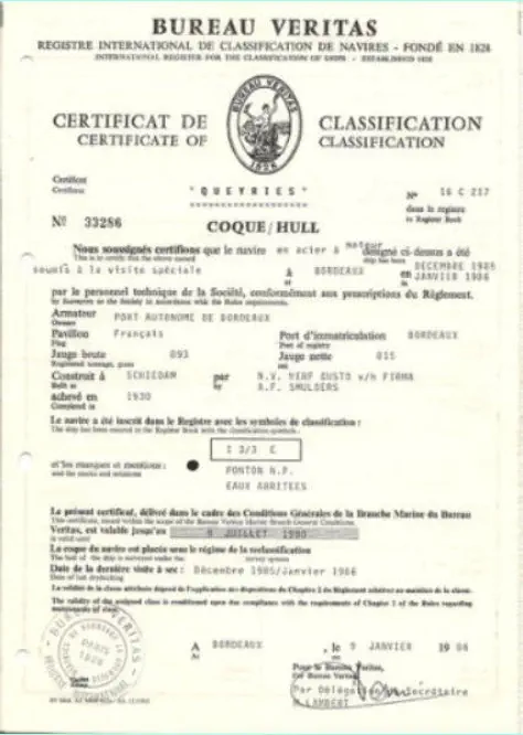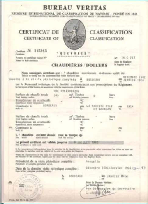 Dernier Certificat de Classification Machines du Bureau Veritas. Dernier Certificat de Classification du Bureau Veritas pour sa