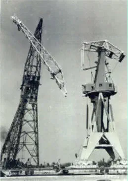 La bigue flottante QUEYRIES va être utilisée en 1982 pour l’assemblage à Bassens Aval des énormes grues Ceretti et Tanfani de 15/25 tonnes